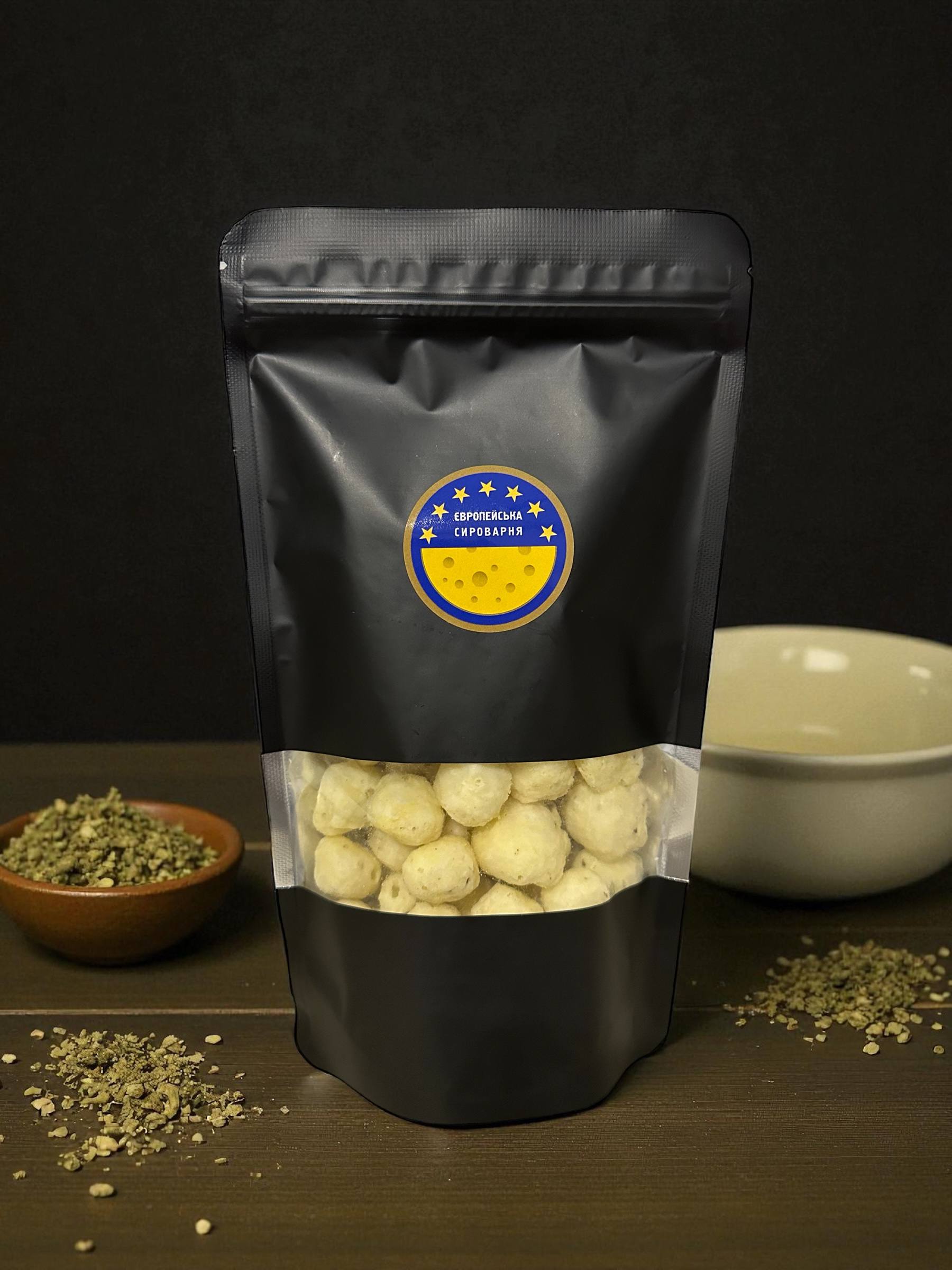 Витончено хрусткі кульки з нашого сиру, сповнені аромату базиліку, орегано та розмарину. Легкі, запашні, з ніжним сирним післясмаком. Ідеально пасують до келиха білого чи рожевого вина, створюючи атмосферу легкості та справжнього прованського задоволення.