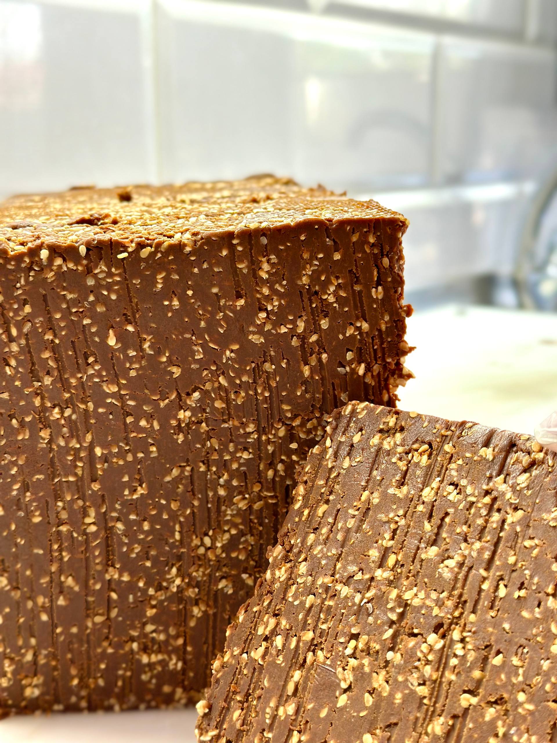 Брюност з кунжутом — це норвезький карамельний сир із м’якою, щільною текстурою. Має насичений солодкуватий смак, що нагадує варене згущене молоко. Обсмажений кунжут додає легкий горіховий післясмак і приємний хрум. Ідеальний як десерт або в парі з кавою.